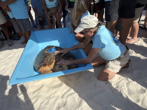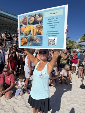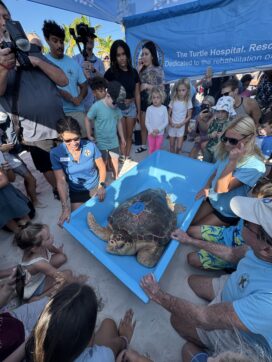 - the turtle hospital is proud to announce the release of molly a resilient loggerhead sea turtle who captured hearts worldwide during her extraordinary rehabilitation journey. molly the first loggerhead of her size to survive the removal of such a larger tumor will return to her ocean home Tuesday, November 25th at Higgs beach in key west. Molly was rescued in early august off-key west by local charter boat captain, who discovered her weal, anemic, and entangled in a stone crab trap line. she was covered in barnacles and suffering from a massive fibropapilloma tumor on her shoulder. Captain Nate contacted the turtle hospital, and Molly was transported to the facility via ambulance to begging her critical care. upon arrival the medical team at the turtle hospital began intensive treatment. molly regimen included broad spectrum antibiotics, fluids, vitamins, a healthy diet of mixed seafood, and multiple surgeries to remove her numerous tumors. The colossal tumor on her shoulder weighed an astounding 10.1 pounds. molly beat the odds and her incredible recovery has inspired millions. videos of her journey have garnered over 80 million views on social media, and people have traveled from across the country to visit her surinf her stay at the hospital. Her story has profoundly increased public awarness and love for sea turtle and the challenges they face. for her release molly will be fitted with a small satellite transmiter tag. the public will be able to follow mollys journey at seayou can click in the link here to follow Molly’s Journey!! -> Molly – Sea Turtle Conservancy
