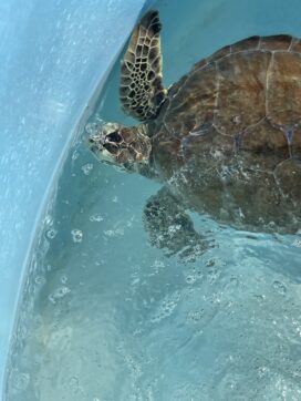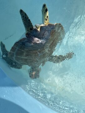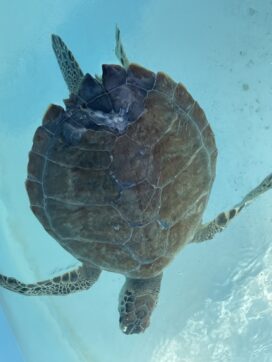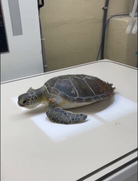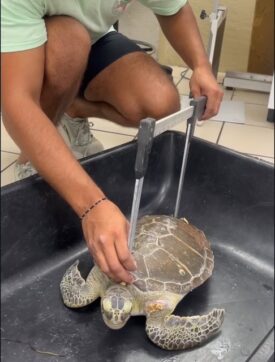 - 10/9/2025 – Meet Jude! a juvenile green sea turtle who was rescued today in Marathon, in the Faro Blanco Marina. He has a healed boat strike wound on the back of his carapace (shell) and old scars on his front and back flippers from possible entanglement. Jude has been checked into The Turtle Hospital he is active, but positively buoyant, floating at the surface.